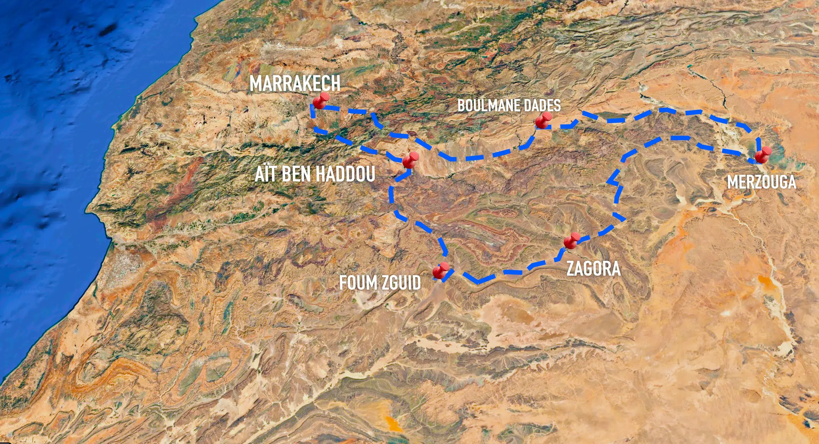 – Départ pour les contreforts de l’Atlas et les gorges du Dadès
